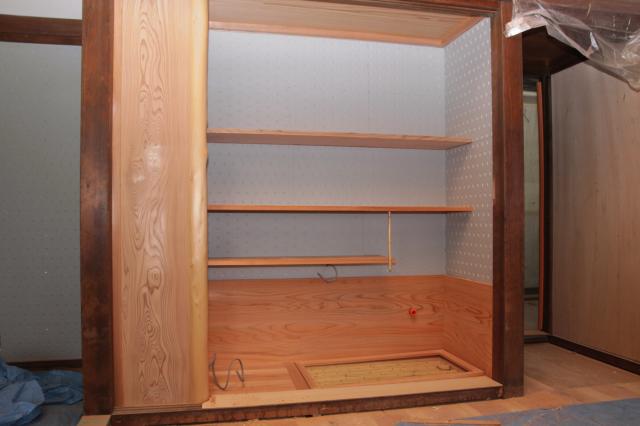 将来、こちらの部屋でお茶のお稽古などを考慮し、水屋を作っています。