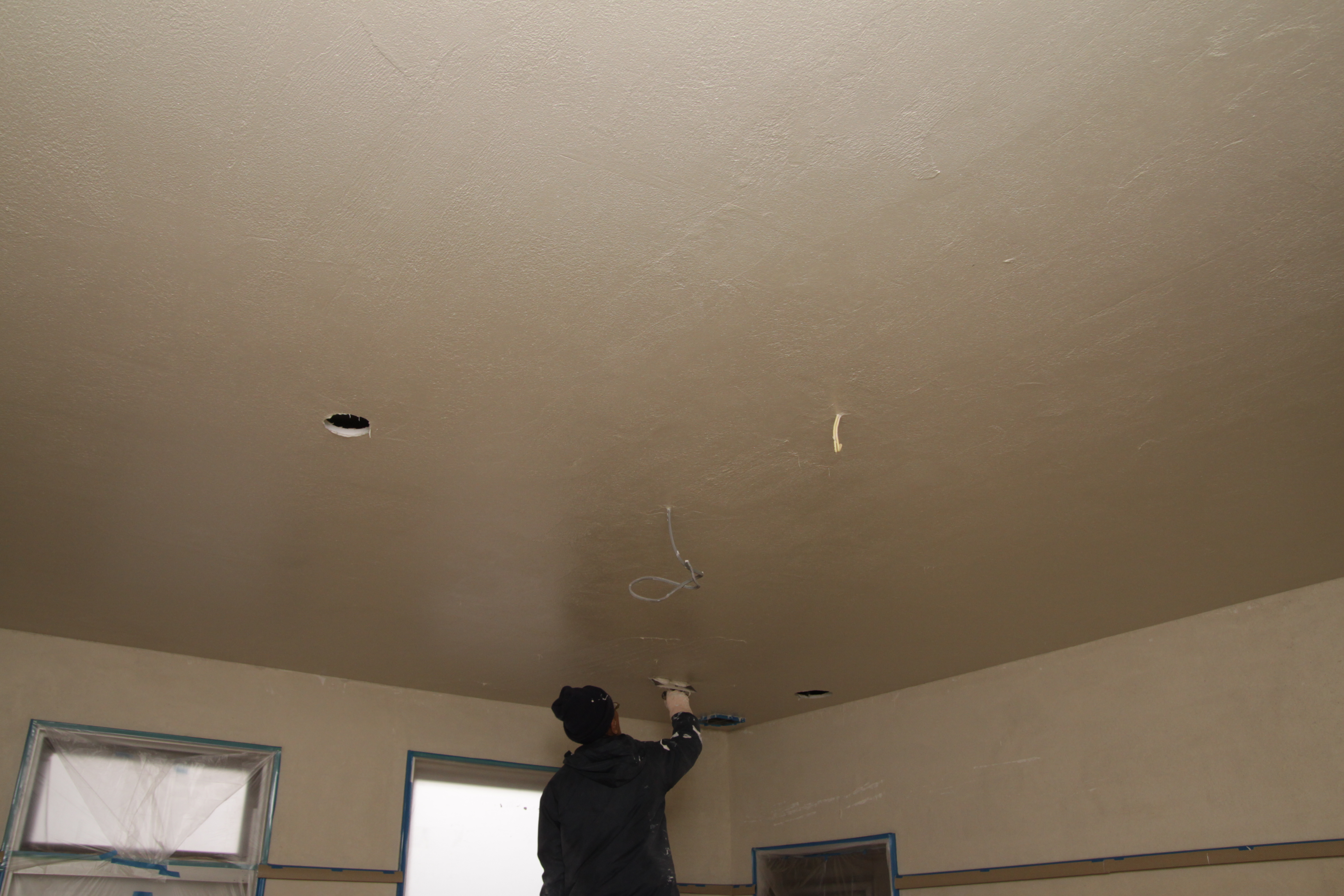 2階の寝室の天井ですが、漆喰塗りの作業状況です。