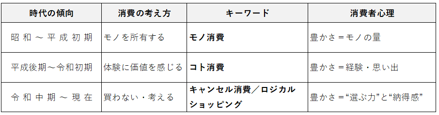 モノ消費、コト消費、キャンセル消費、ロジカルショッピング。