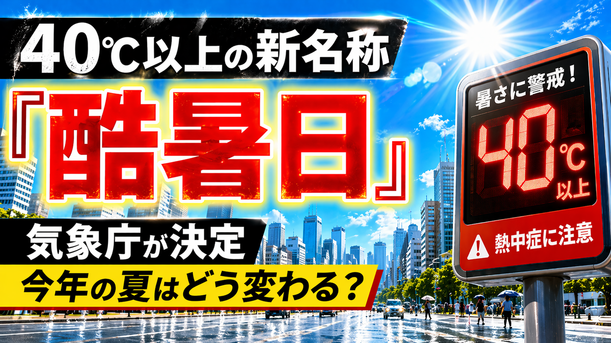 気象庁は2026年4月17日、最高気温40℃以上の日の新たな名称を「酷暑日(こくしょび)」に決定したと発表がありました。
