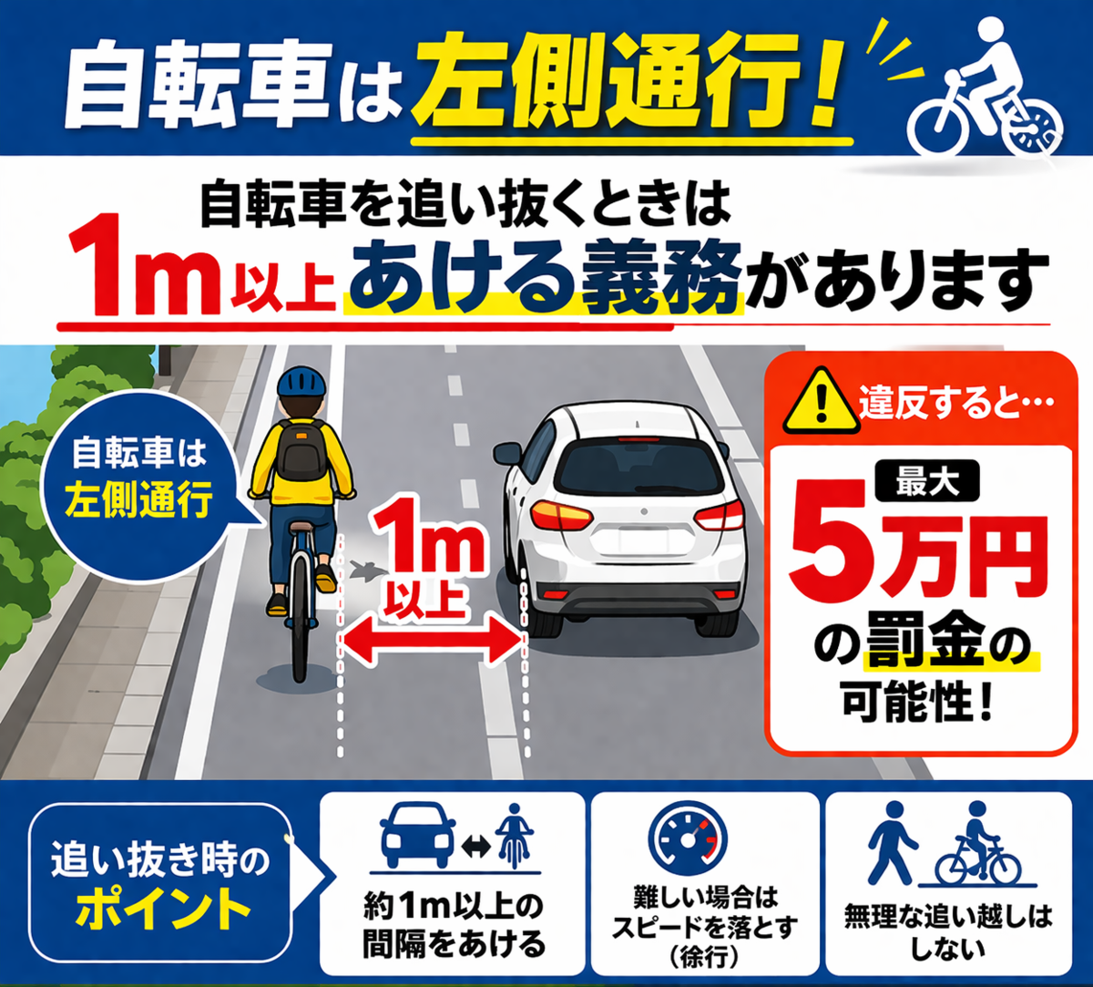 📏 追い抜きは1m以上あける