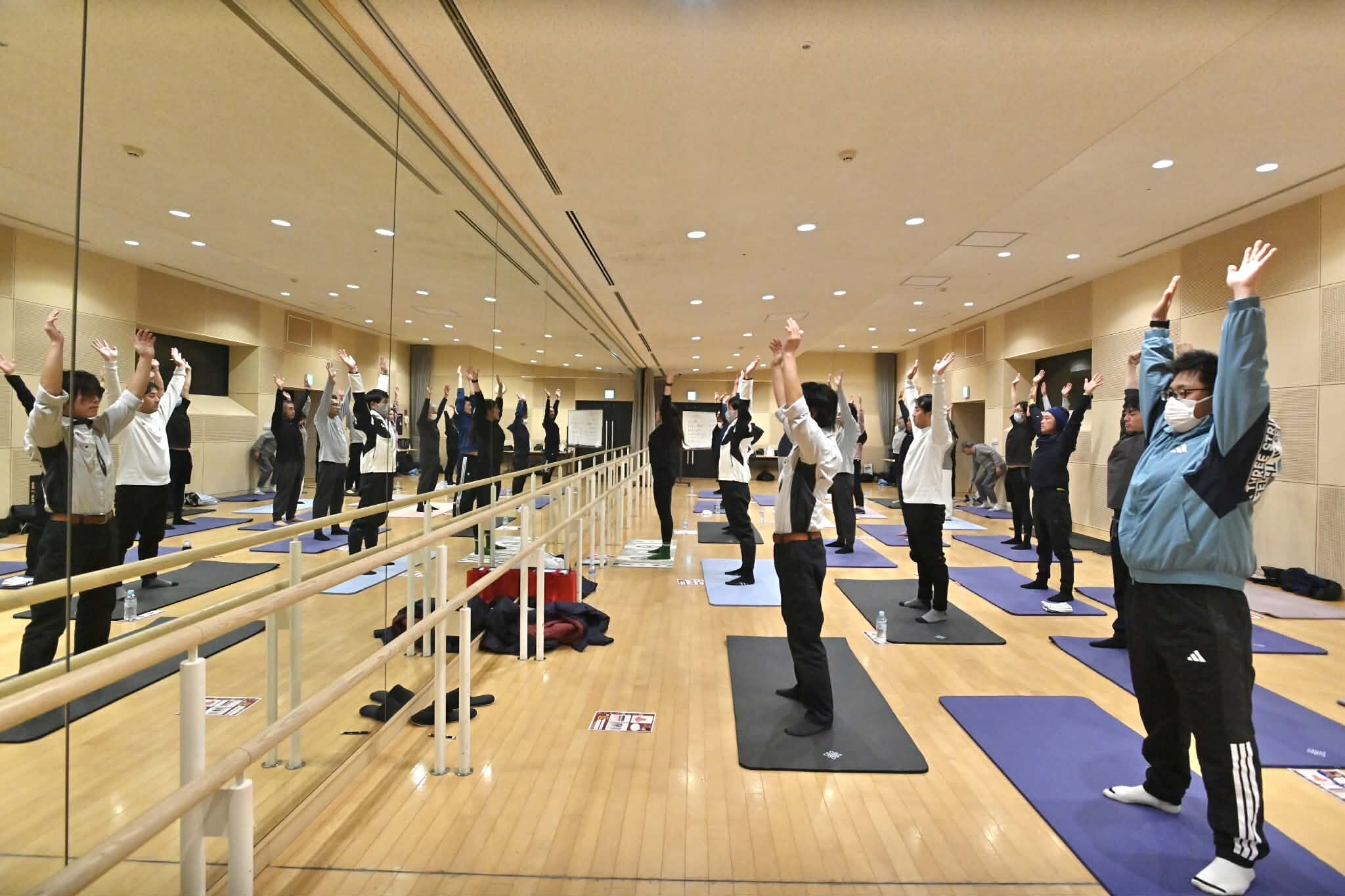 呼吸や簡単なストレッチから、順番に身体を動かしていきました。