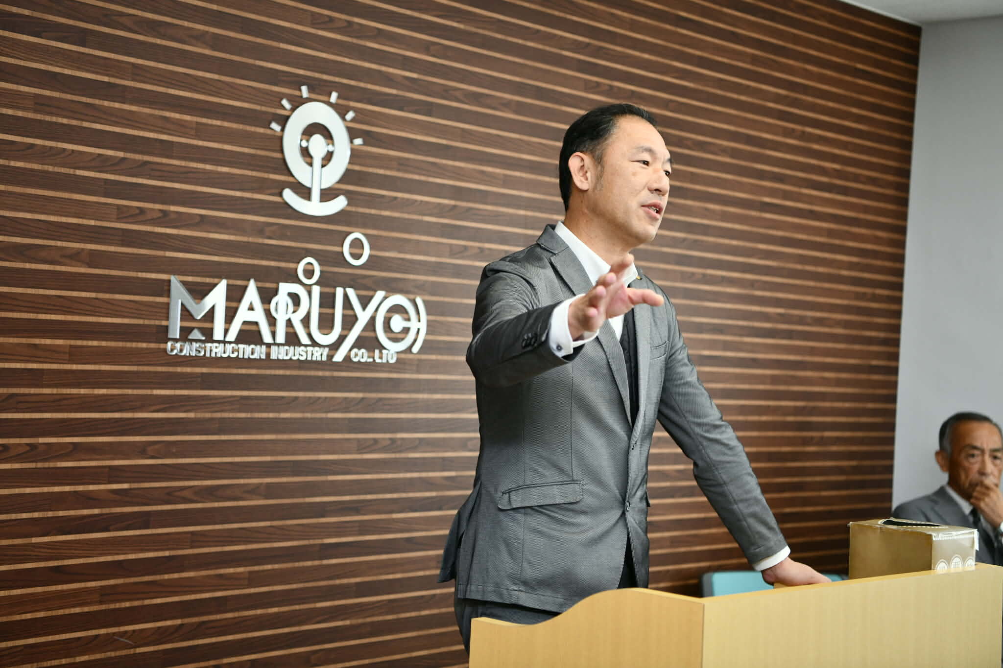 丸ヨ建設の現職員の皆様、協力会社の皆様、そして、先代や先々代の丸ヨ建設に関わって頂いた皆様に、感謝を申し上げます。