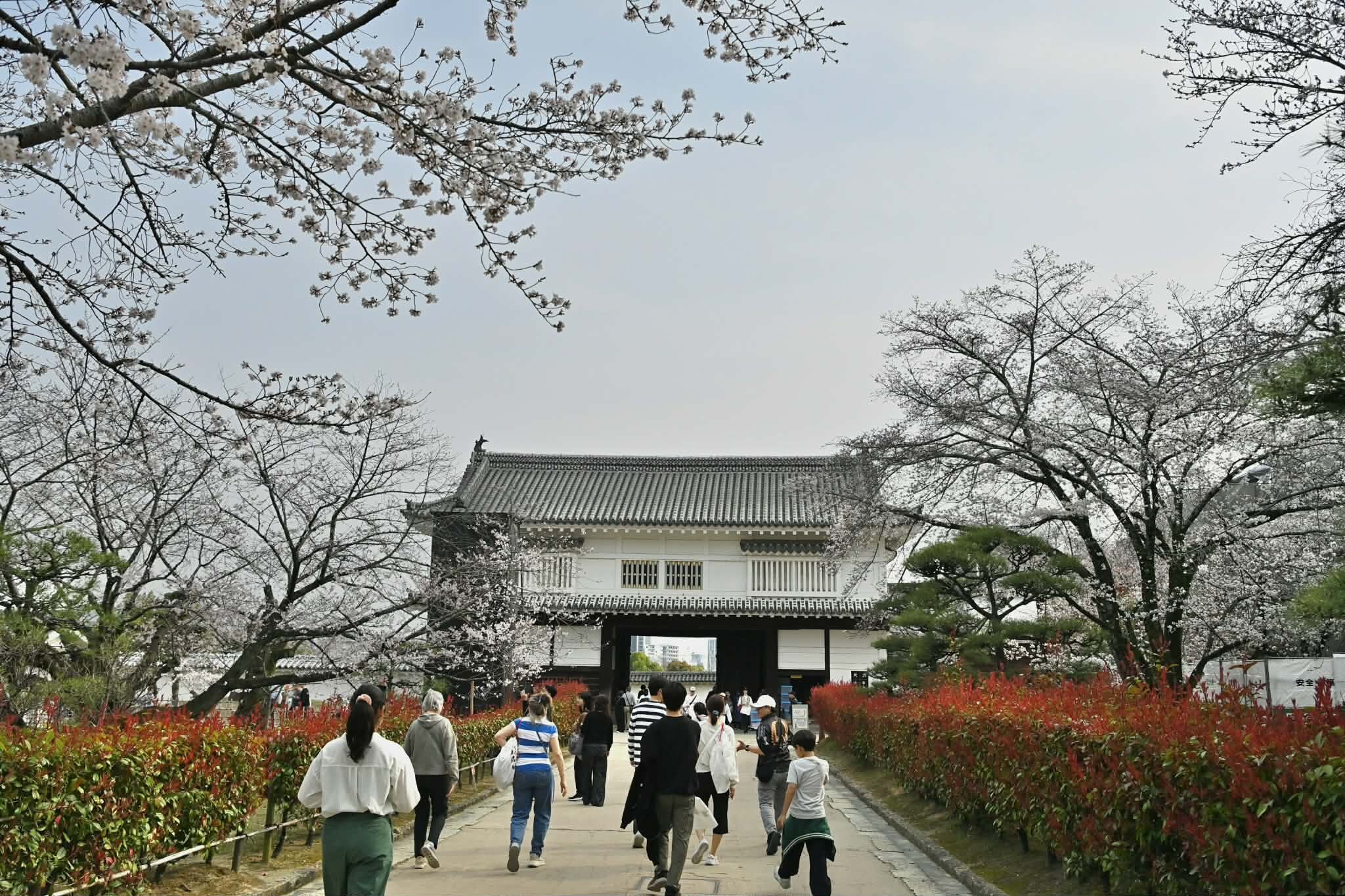 桜の開花と重なって、たくさんの観光客。