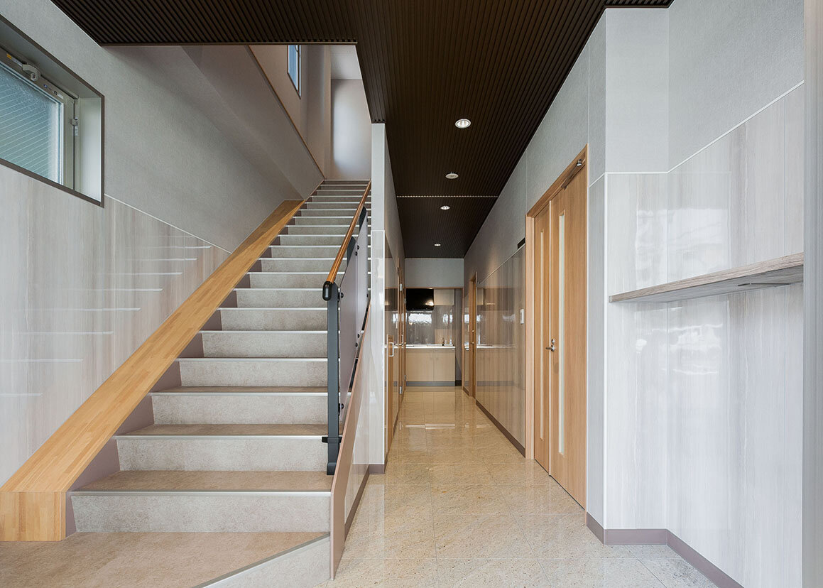外壁はデザイン性の高いALCパネル、開口部は網入りガラスを採用し、防犯性を高めてあります。